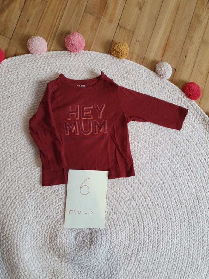 tee-shirt manche longue 6 mois marque kiabi couleur bordeaux en très bon état dressing trié par taille , cliquez ici #adele2791_sixmoisgarçon