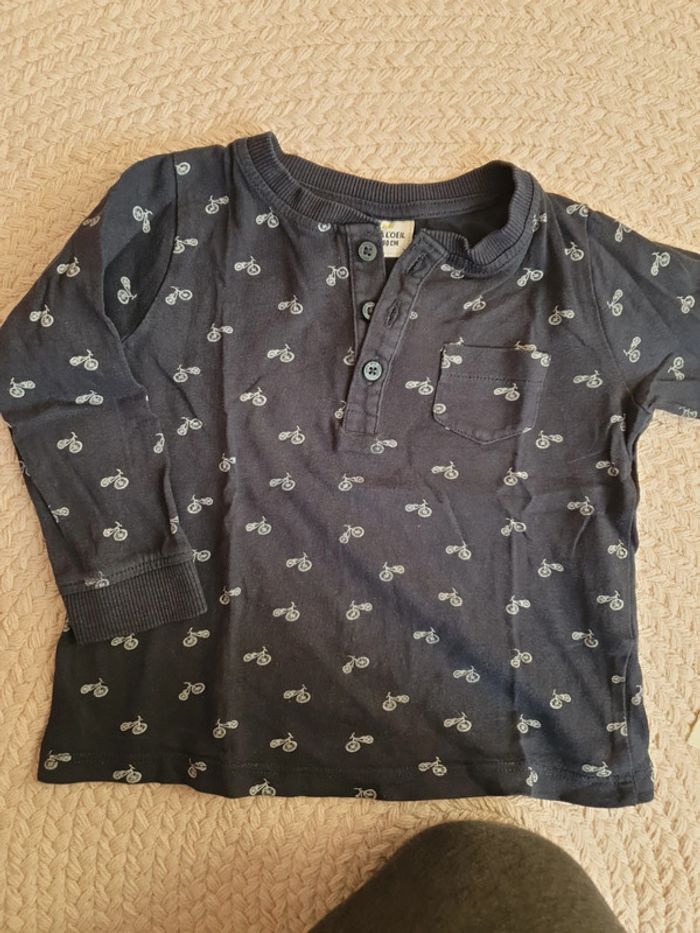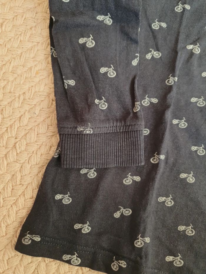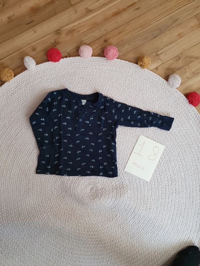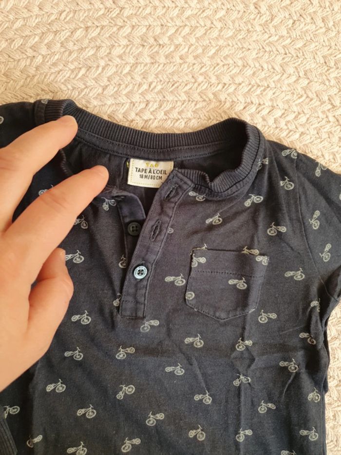 tee shirt manche longue 18 mois marque tape à l oeil couleur marine avec motif vélo seconde main . couleur un peu passé mais en très bon état #adele2791_dixhuitmoisgarçon