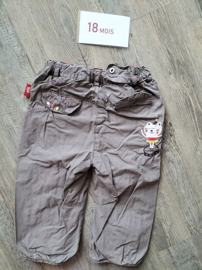 Pantalon en toile Couleur taupe Motif chat sur le côté Taille 18 mois Réglable a la taille