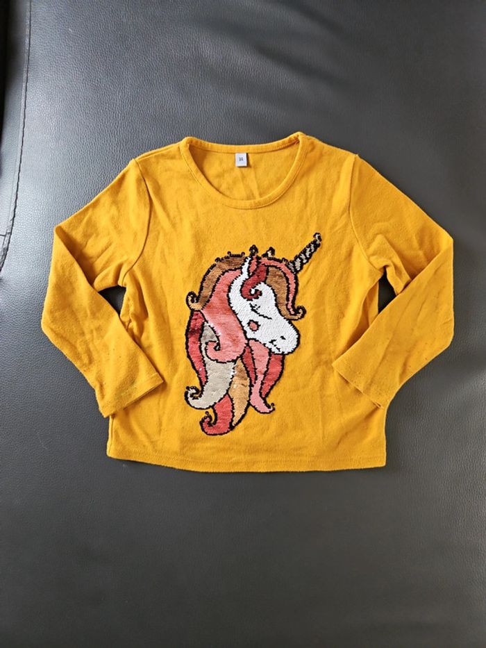 Tee-shirt manche longue à sequins licorne fille - photo numéro 1