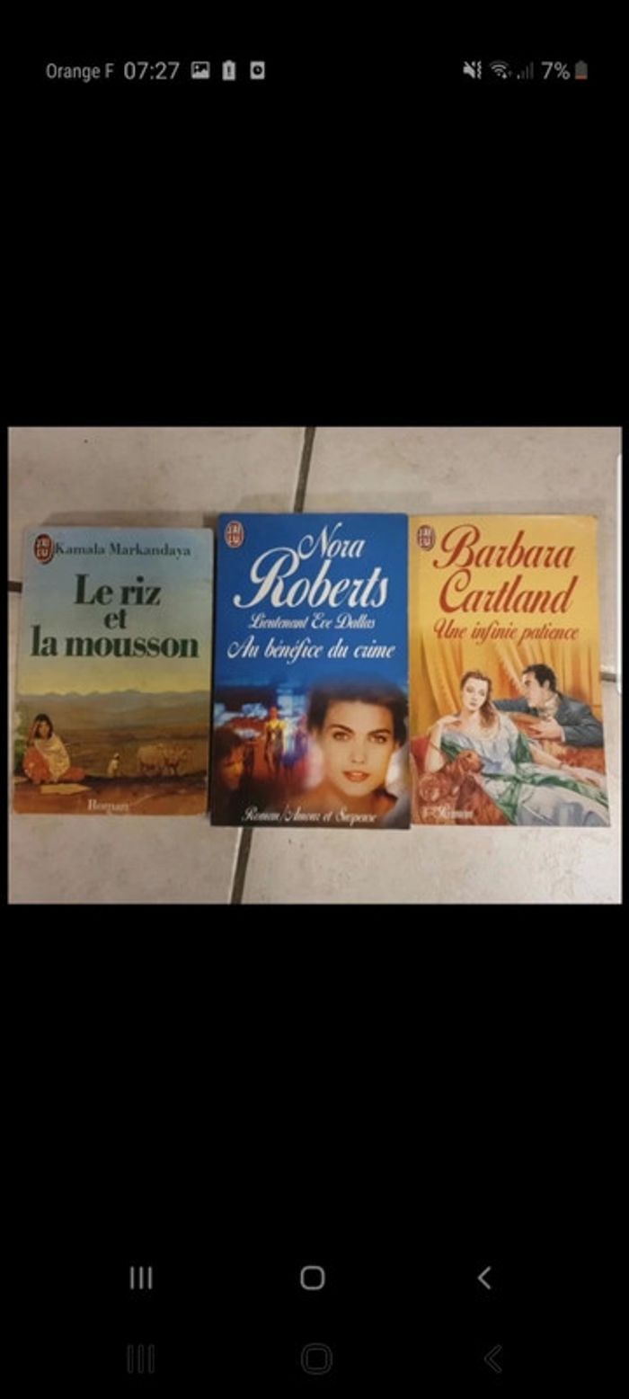 Le riz et la mousson (couverture abîmée) de Kamala markanda Barbara Cartland : Une infinie patience Et Au bénéfice du crime de Nora Roberts Etat bon à correct (intérieur jauni et couvertures un peu froissées) #palest1_livres