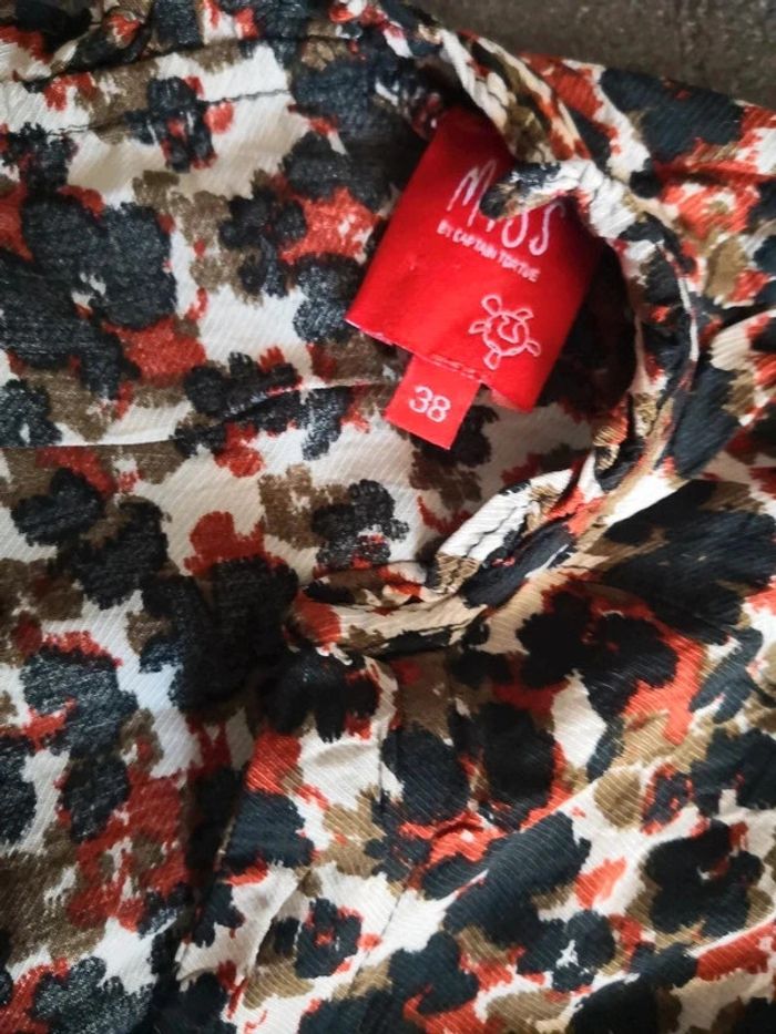 Blouse femme marque Captain Tortue Motod marron orange vert kaki Taille 38 Déjà porté #vetementfemmemonro3430 #modefemme #mode #vetementsfemme #lotvetements #lotvetementfemme #captaintortue #collectioncaptaintortue #blousefemme