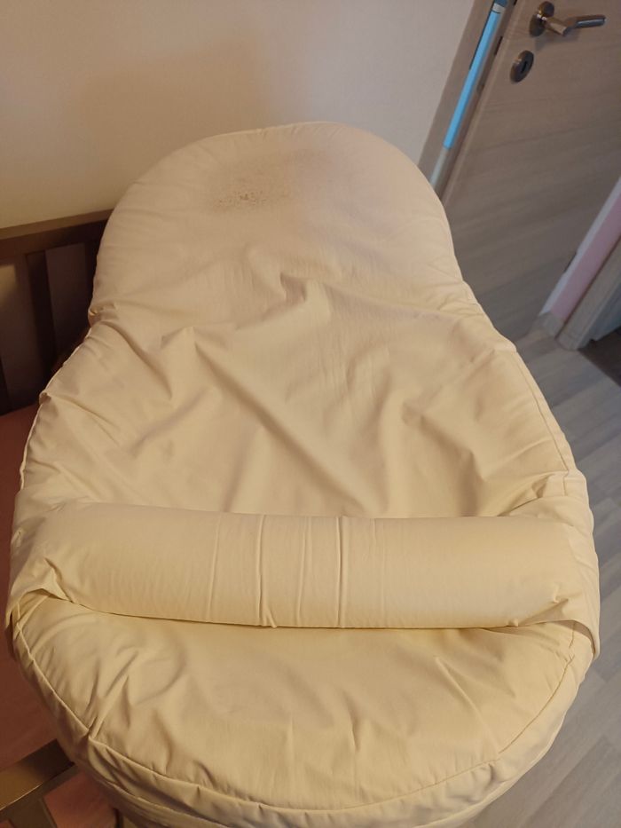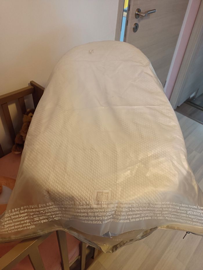Cocoonababy en bon état Quelques traces usure au niveau de la tête car la matière est lavable avec une éponge et a force de nettoyer l' usure est apparue mais ne joue en rien dans l utilisation car la housse vient après par dessus Sac de transport la fermeture est abîmée voir photo mais une fois dans le lit de bébé le sac ne sert plus Indispensable pour des nuits tranquilles avec bébé