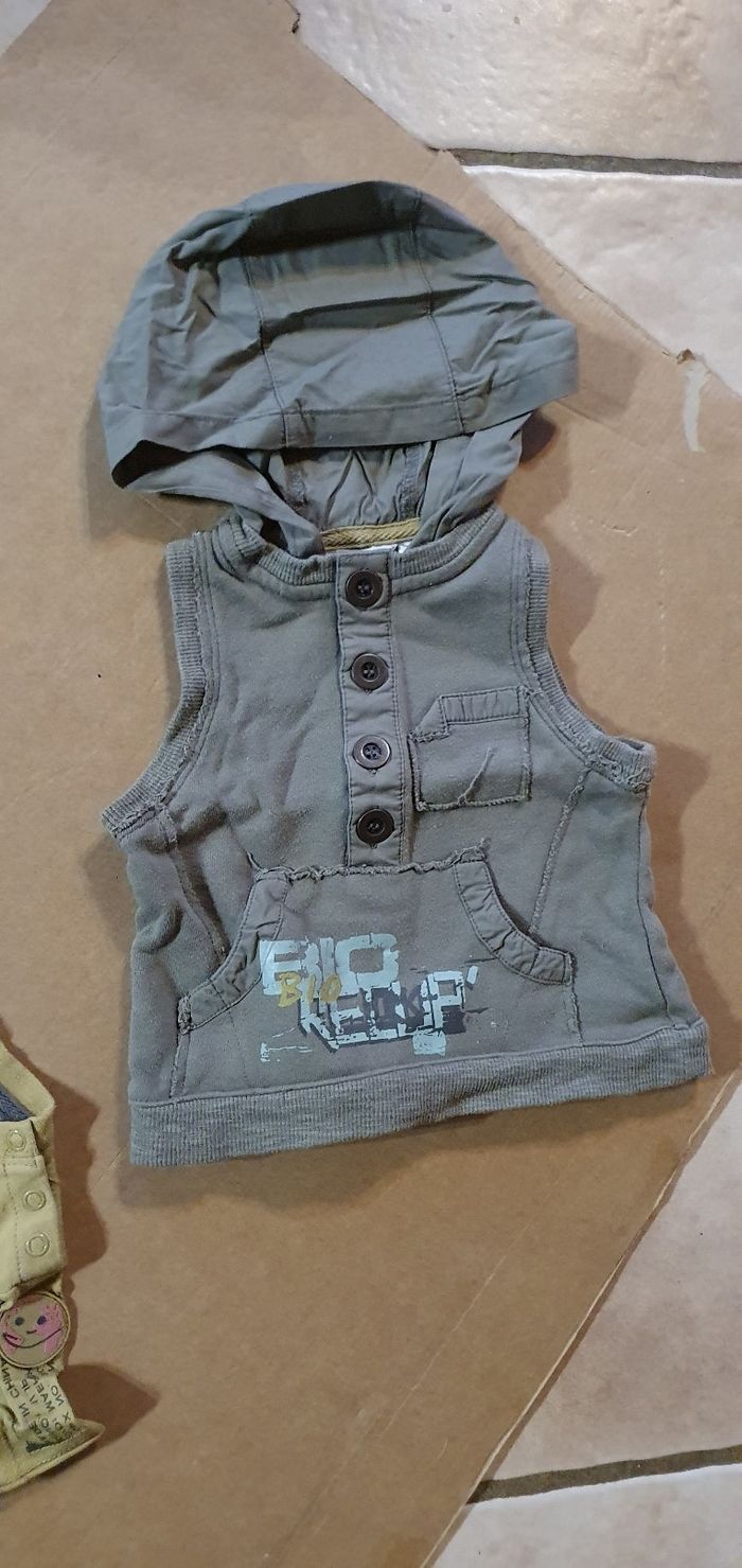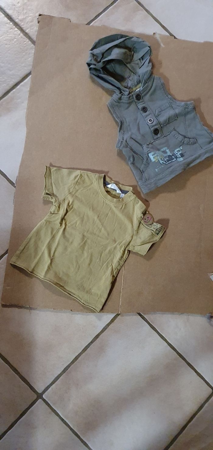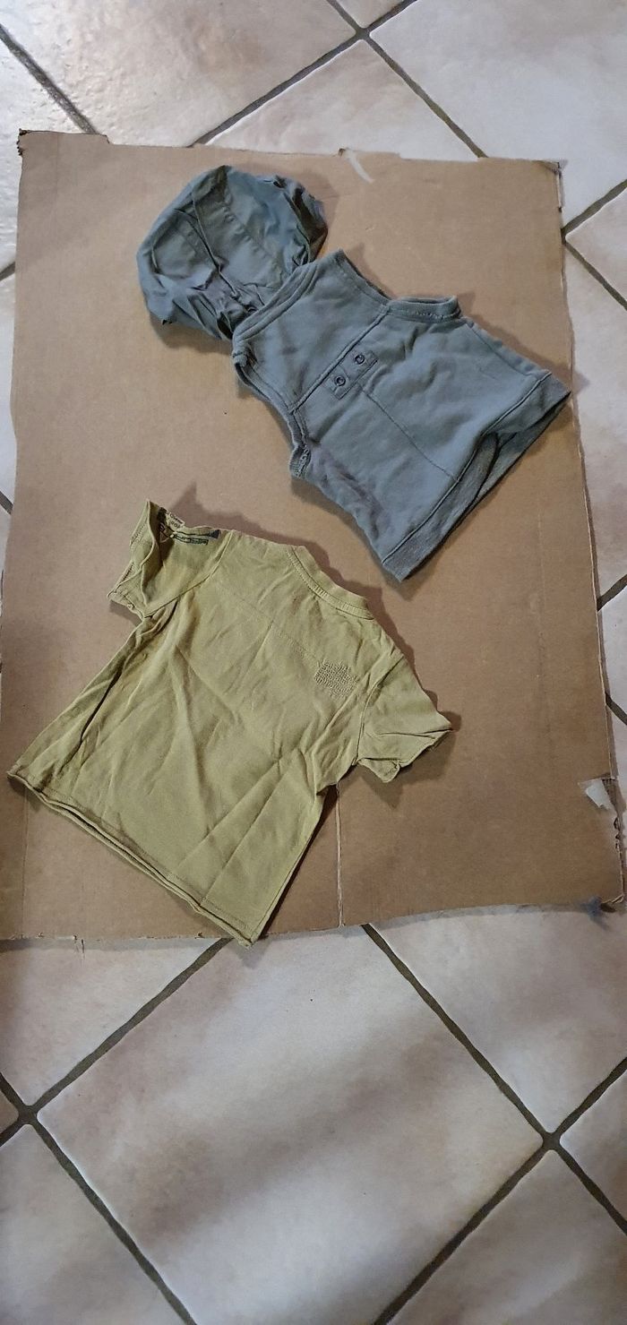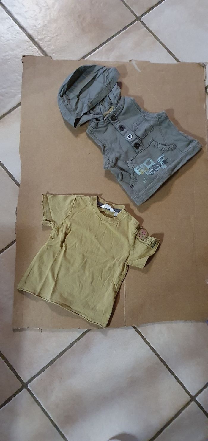 Ensemble 2 pièces composé d'un tee shirt kaki et d'un sweat sans manche kaki foncé. Marque kidkanaï, très bon état.