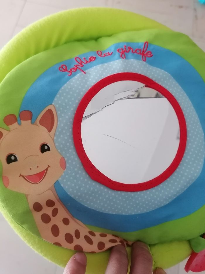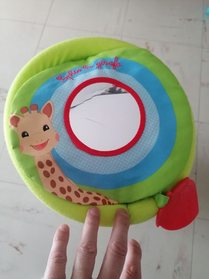Coussin gonflable Sophie la girafe Le petit miroir sur le côté est plié