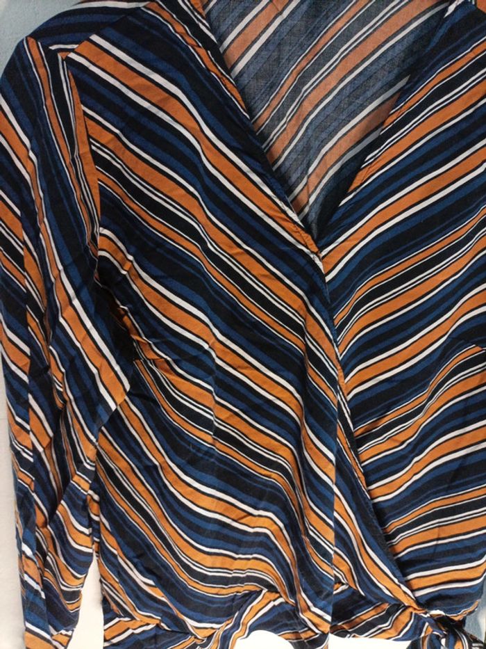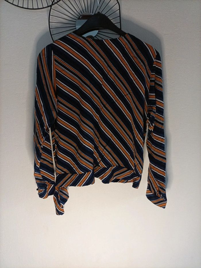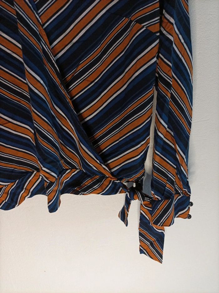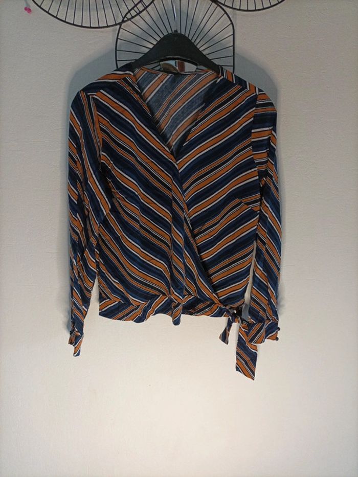 Blouse manches longues, bleue et orange, petit noeud sur le côté