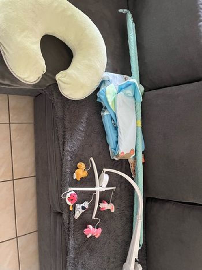 Vends coussin d’allaitement, tapis d’éveil Sophie la girafe, ainsi qu’un mobile