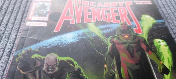 Panini comics : Uncanny Avengers n° 9. En français. Ce comics date d ' août 2015, il a plus de 7 ans. Idéal pour commencer une collection. Il est en très bon état, la couverture est légèrement abîmé. Il a été à peine feuilleté. Les pages à l'intérieur sont en très bon état. Sera correctement protégé pour l'envoi.