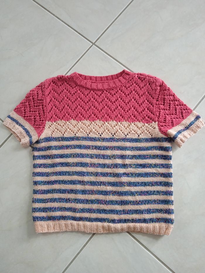 Joli petit pull d'été unique, fait main en Normandie par ma tata 🧶, et non par des petits chinois à l'autre bout du monde 🤣🤣 Fait son petit effet porté 😍