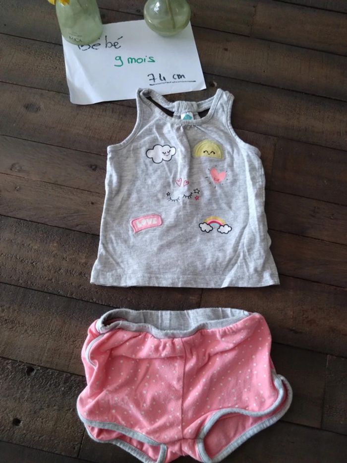 Ensemble été débardeur et short bébé fille 9 mois - photo numéro 1