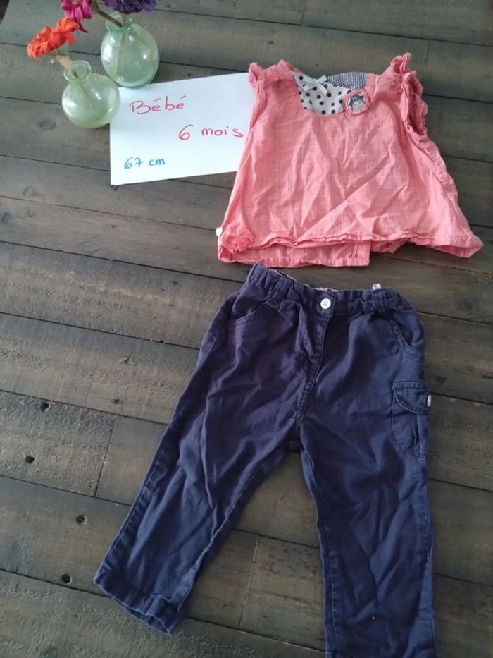 Ensemble été pantalon et blouse bébé fille 6 mois