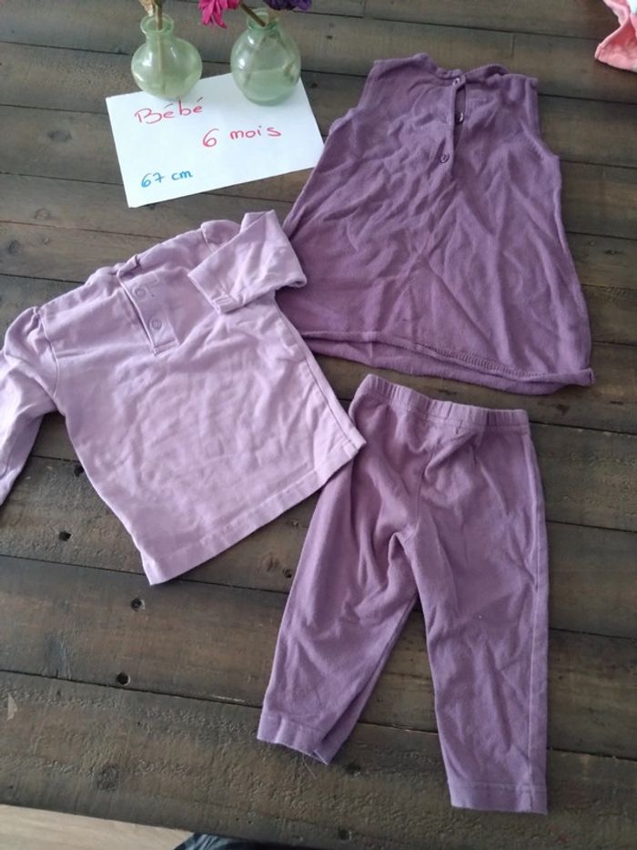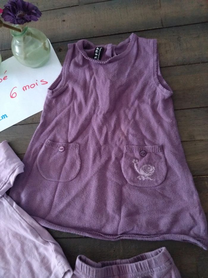Lot de robe pull sous pull et legging violet bébé fille 6 mois - photo numéro 1