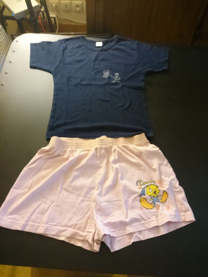 Vends ensemble de nuit composé d'un short de nuit (offert car taché) , d'un débardeur etam neuf, et d'un t shirt