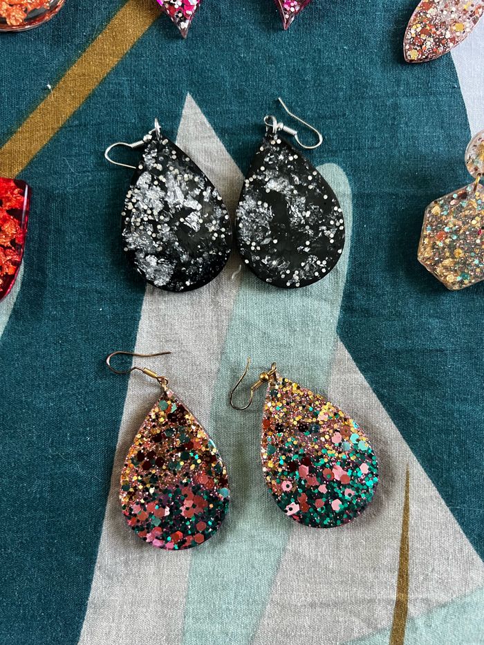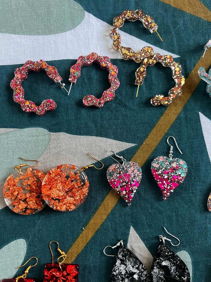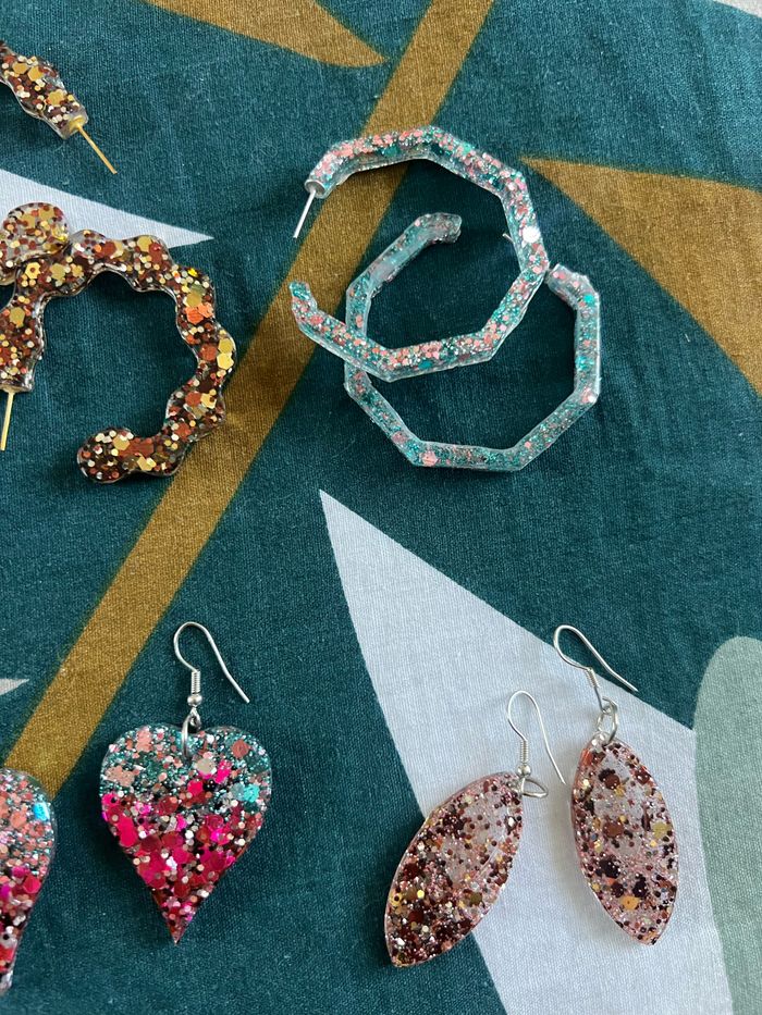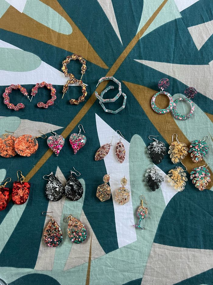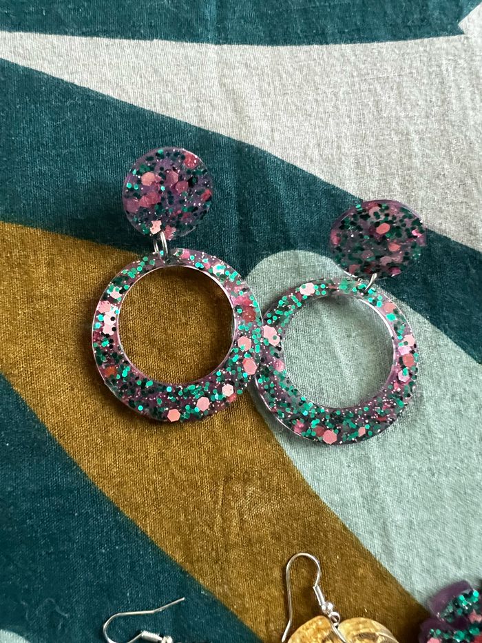 boucles d’oreilles au choix Fait sur-mesure en fonction de vos envies et de vos choix (couleur, paillettes…) Attention, il y a des délais de fabrication
