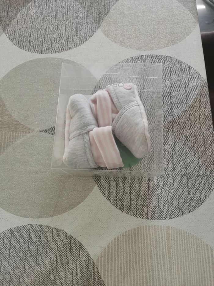Chaussons rose et gris 1/6mois