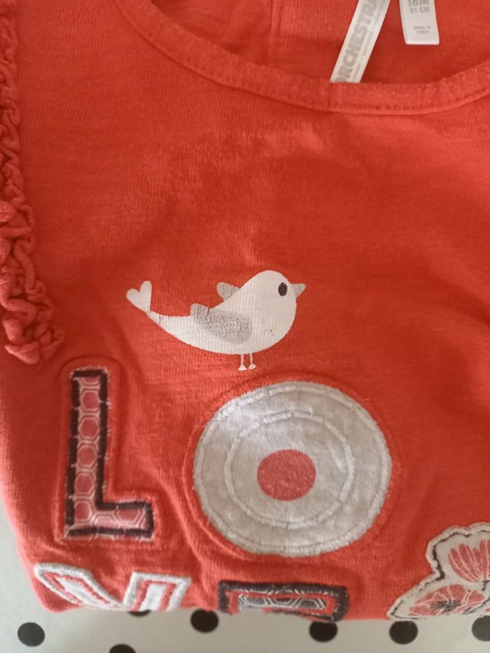 T-shirt manches longues pour fille taille 18 mois Marque orchestra Dessin oiseau un peu craquelé #sarahsoso91_fille18mois