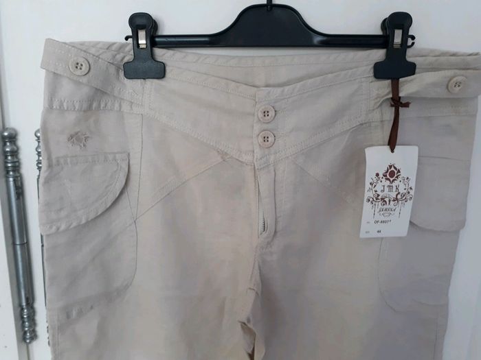 Pantalon beige taille 44 neuf en lin et coton - photo numéro 3
