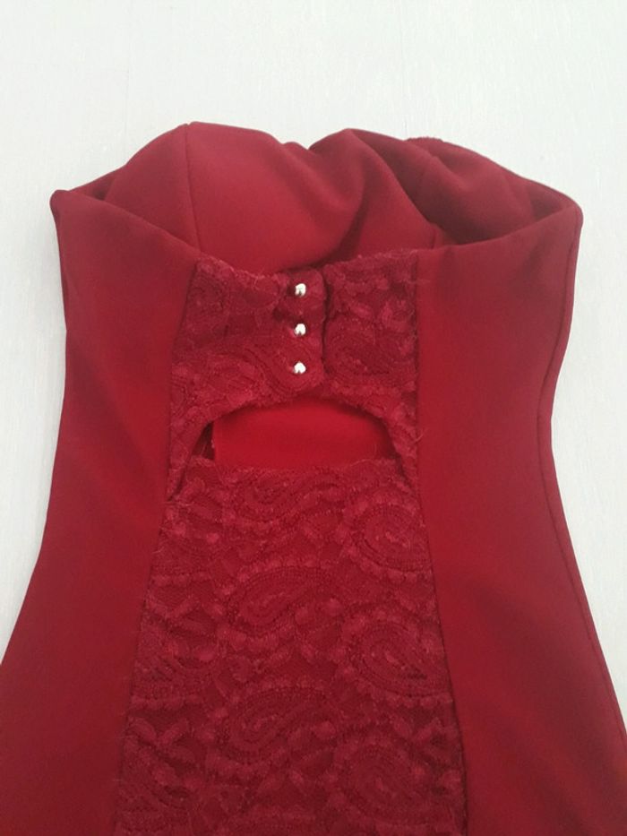 Bon état 3 boutons à l'arrière Ouverture à l'arrière où l'on voit le dos Des petits morceaux d'élastique se détachent au milieu sur les dentelles devant et derrière Pas d'étiquette pour dire la taille mais taille un S #sarahsoso91_robefemmeTS #sarahsoso91_femmeTS #robe #robedentelle #roberouge #roberougebordeau #robetaille36
