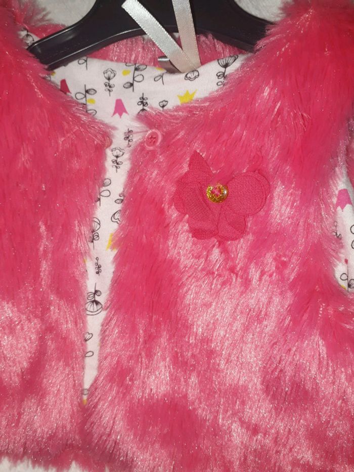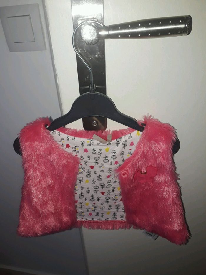 Gilet sans manche en fourrure rose Fille 12 mois 74 cm Porté 1 fois #sarahsoso91_fille12mois #fille12mois