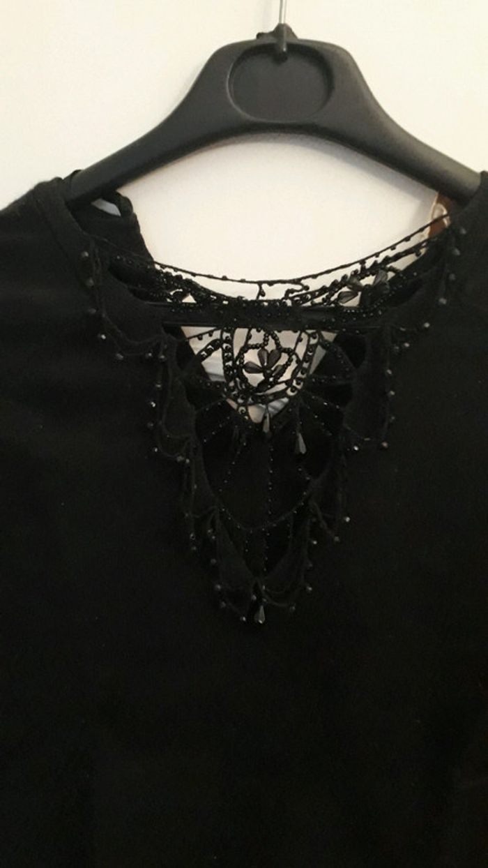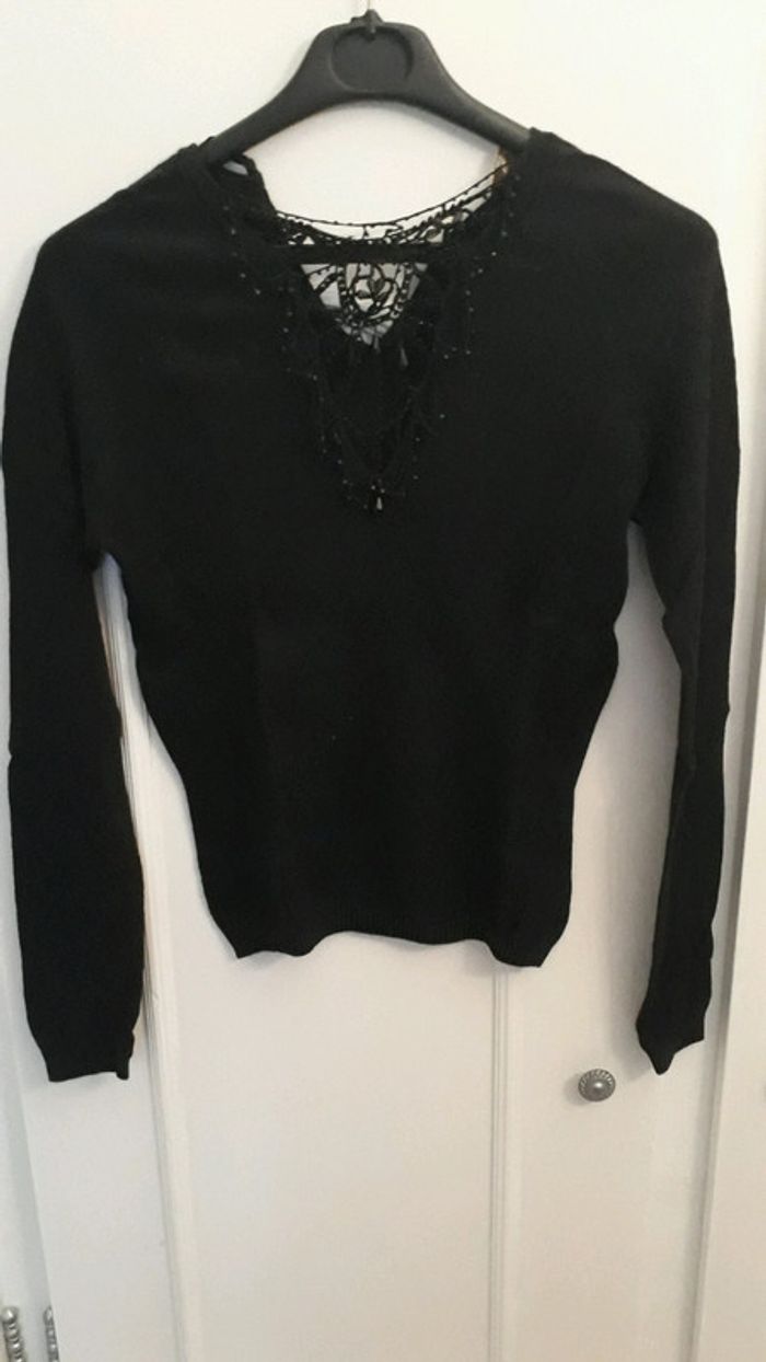 Pull col V avec des perles et noeud satiné à l'arrière taille 1 - photo numéro 2