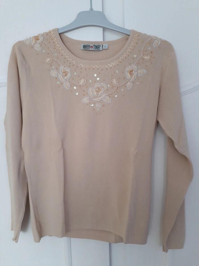 Pull beige avec perles taille L