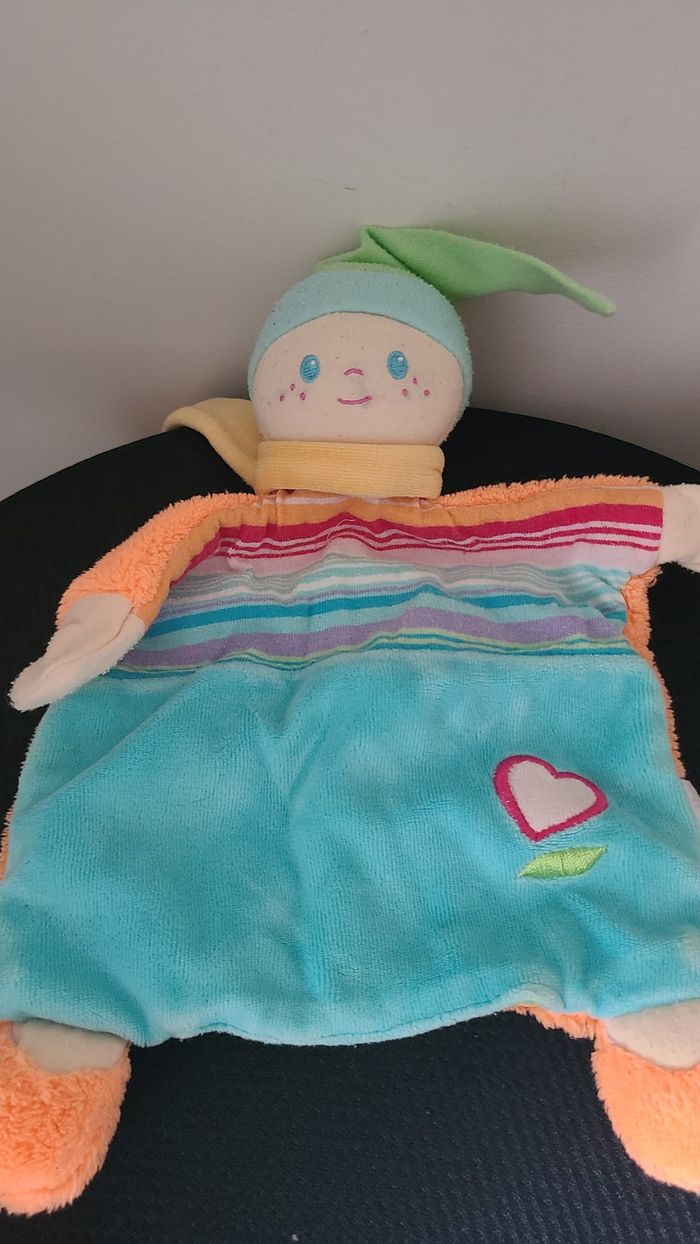 DOUDOU PLAT LUTIN BLEU ORANGE COEUR ARC EN CIEL COROLLE 2009 141