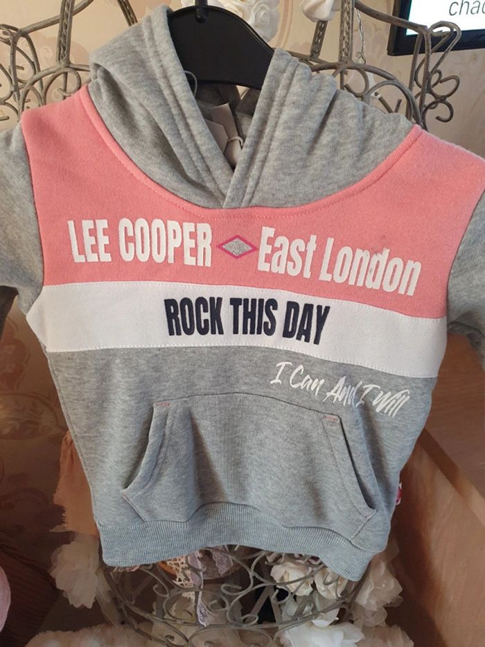 Sweat-shirt Lee Cooper avec capuche Taille 3 ans Neuf avec etiquette Petite tâche noire ( à peine voyante) sur l'ecriture, voir photo