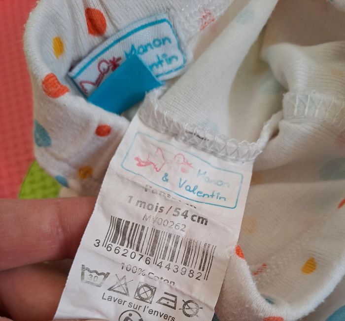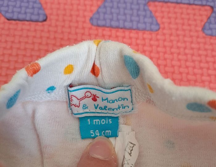Pantalon blanc pois multicolores, manon et Valentin, taille 1 mois (54 cm) - photo numéro 4