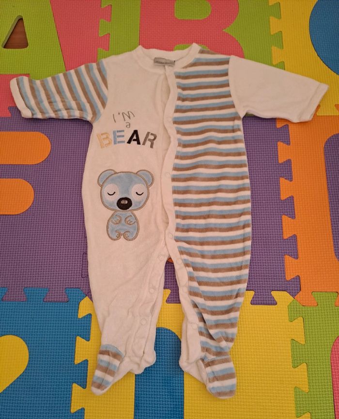 Pyjama grenouillère 1 pièce blanc ours, kiabi, taille 3 mois (60 cm) - photo numéro 1