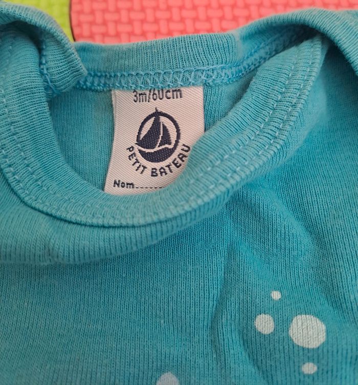 Body manches courtes bleu poissons, petit bateau, taille 3 mois (60 cm) - photo numéro 5