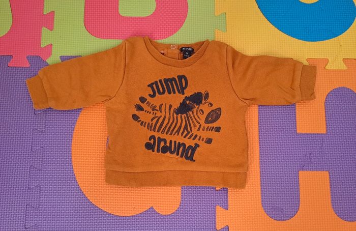 Pull sweat léger orange zèbre, kiabi, taille 3 mois (56/62 cm) - photo numéro 1