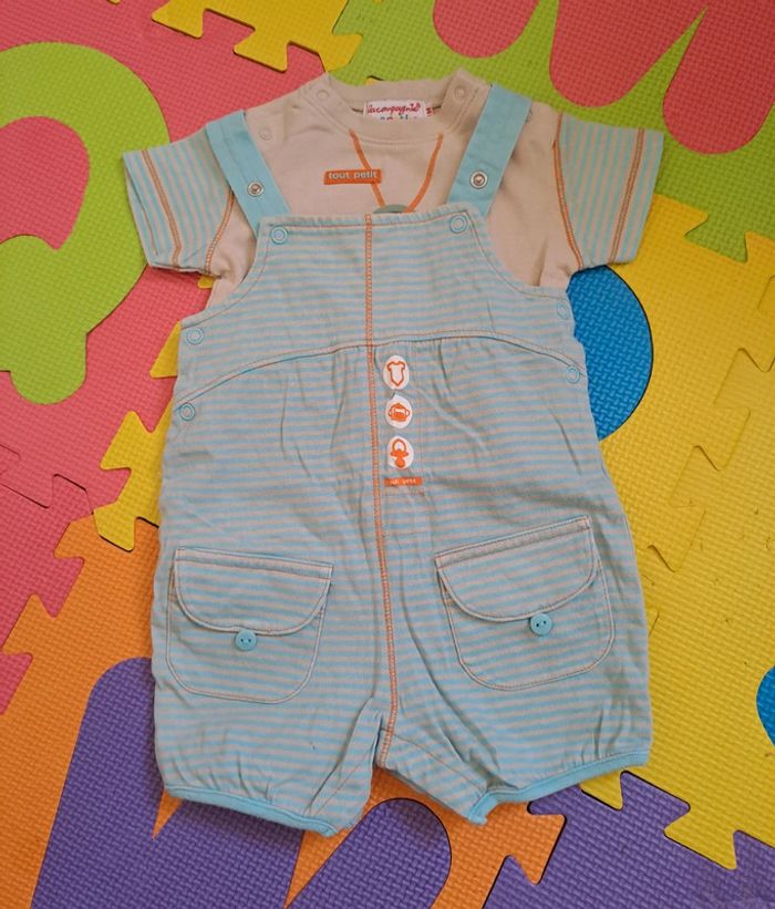 Ensemble t-shirt manches courtes salopette légère, la compagnie des petits, taille 3 mois (62 cm) - photo numéro 1