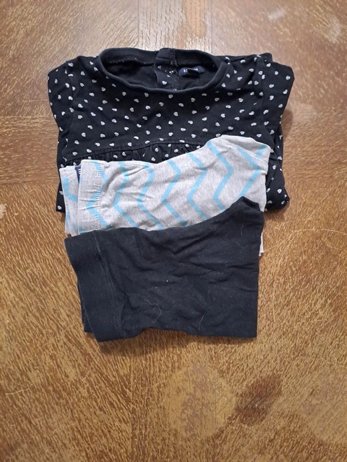 Ensemble t-shirt noir + 2 pantalons leggings noir et gris, kiabi, taille 24 mois (83/89 cm) - photo numéro 3