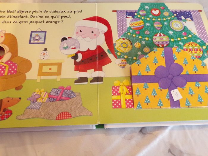 Livre Les cadeaux du père Noel avec rabats Le coin en haut du livre sur la tranche 2 endroit un peu abimer