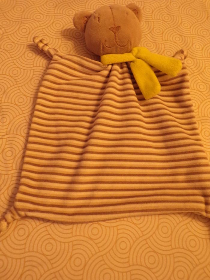 Doudou plat a rayures Ochestra Couleur blanc, gis, marron