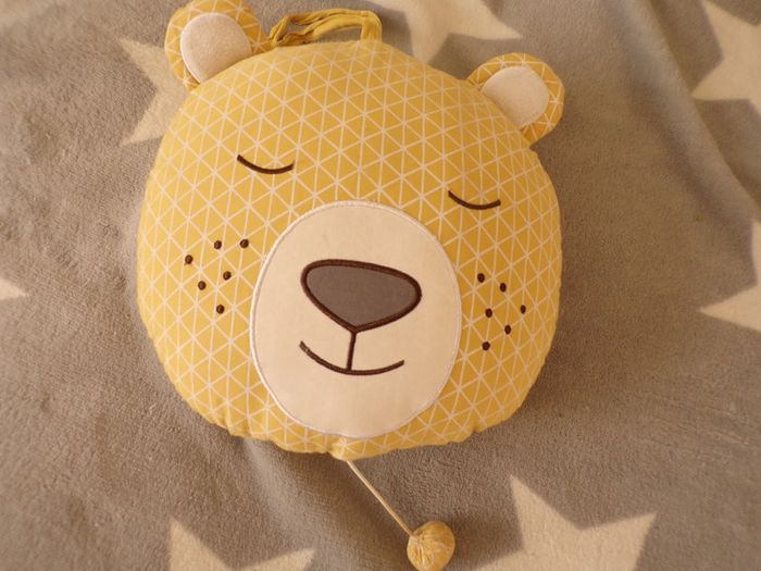 Peluche a suspendre tete Quand on tire la ficelle sa fait de la musique