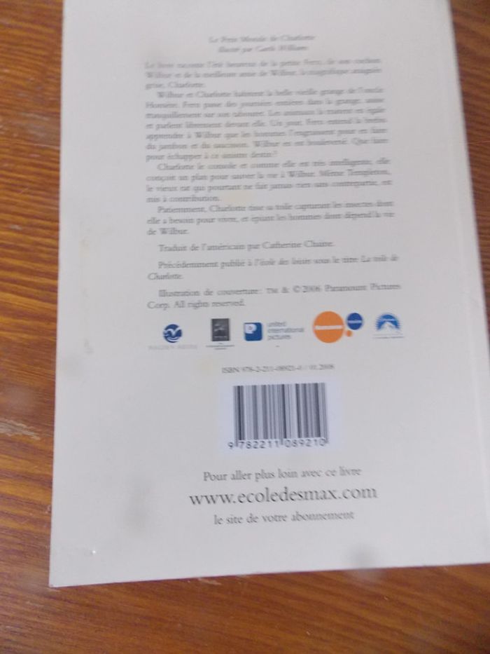 Livree Le petit monde de Charlotte Maximax de l'école des loisirs E.B.White Sur la couverture du dos un peu rayer