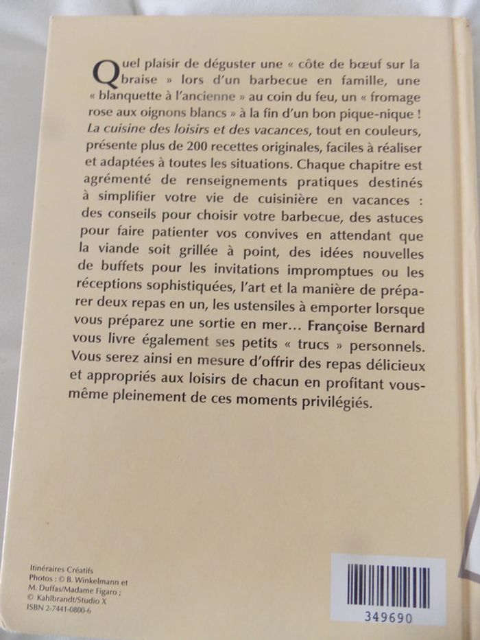 La cuisine des loisirs et des vacances Françoise Bernard Les coins du livre a peine abimer