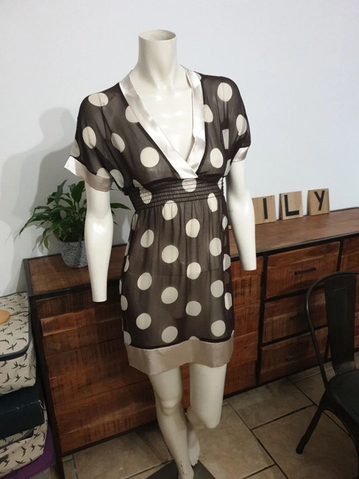 Robe ou tunique Marque promod Taille 36 je pense taille a plat 27 cm sans tirer sur l élastique Marron à pois écru