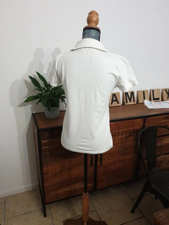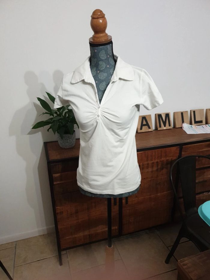 Polo femme Marque tissaia Taille 42 44 Couleur blanc La couleur est un peu jainie mais devrait devenir blanc après quelques lavages