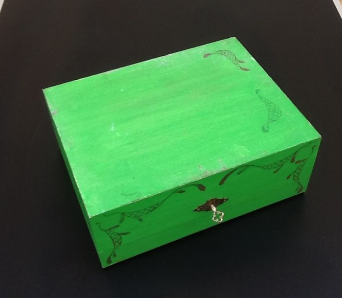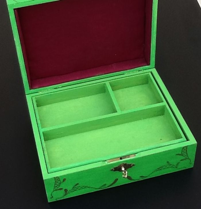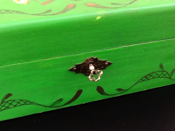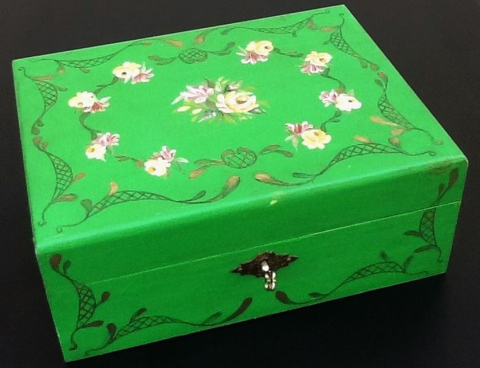 Boite / Coffret rangement Bois à décor floral Serrure avec clé (serrure avec clé fonctionnelle) Longueur : 250mm Largeur : 190mm Hauteur : 100mm Poids : 780grs