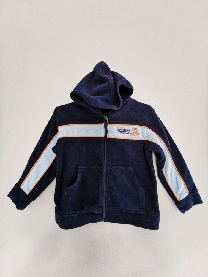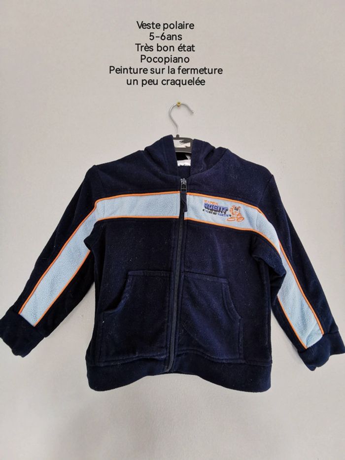 Veste polaire à capuche. Peinture de la fermeture un peu craquelée (photo) 5-6ans. #audgarçoncinqans #audgarçoncinqsixans #audgarçonsixans ***J'applique des réductions en fonction des lots. N'hésitez pas à me demander***