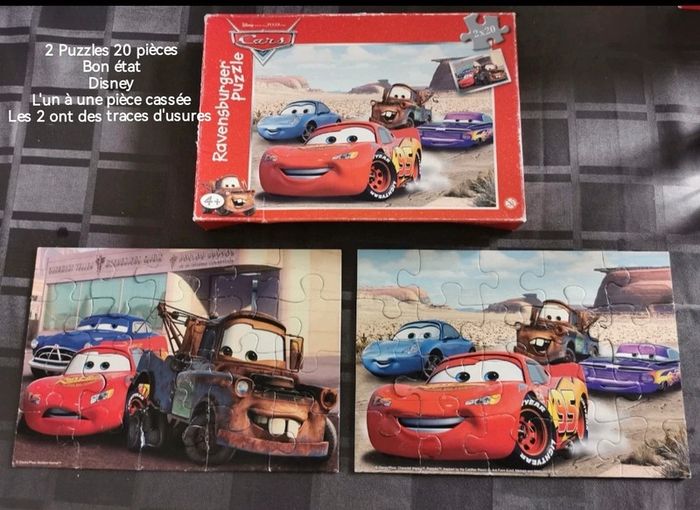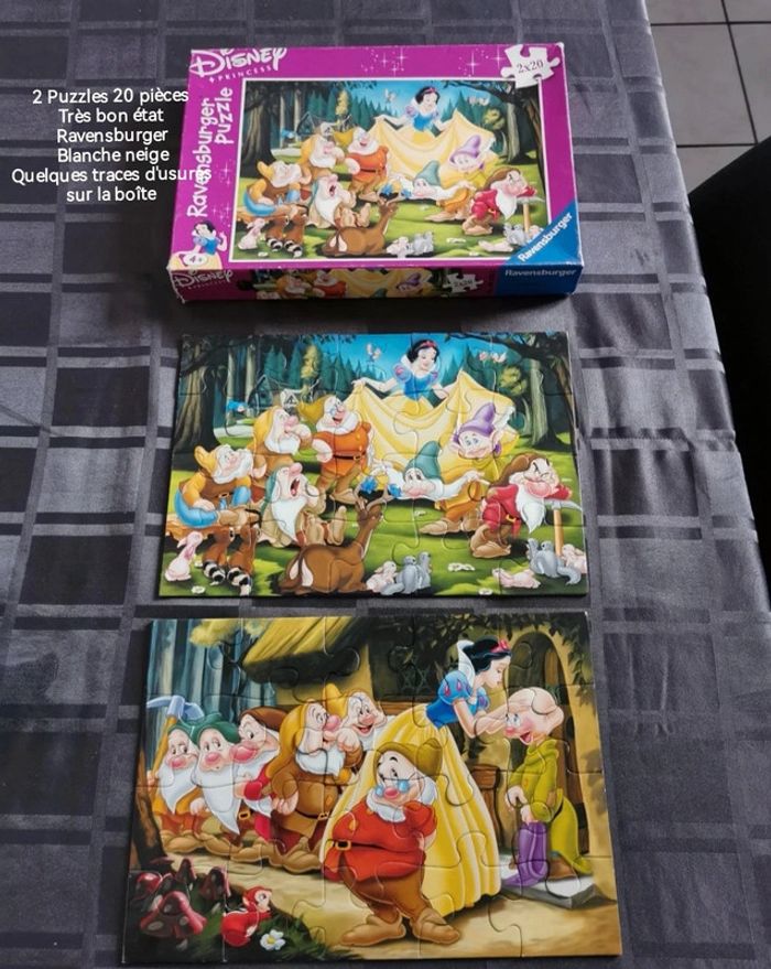 Lot 4 puzzles 20 pièces. -2 puzzles Blanche neige très bon état. Quelques traces d'usures sur la boîte. -2 puzzles Cars. L'un à une pièce cassée, les 2 ont des traces d'usures. Bon état. #audjouet #audpuzzle ***J'applique des réductions en fonction des lots. N'hésitez pas à me demander***