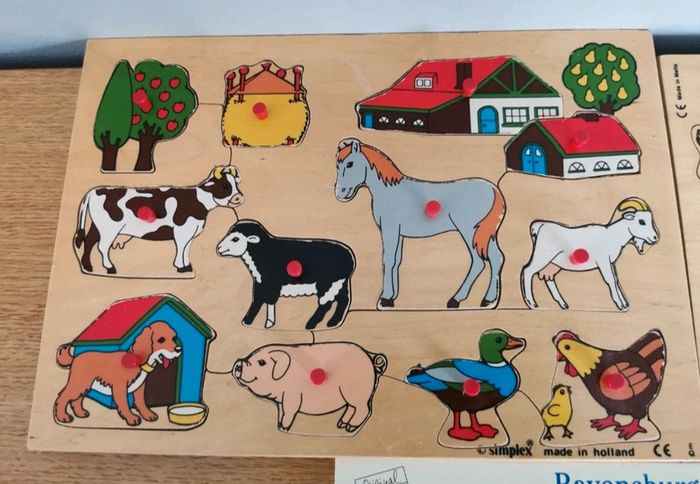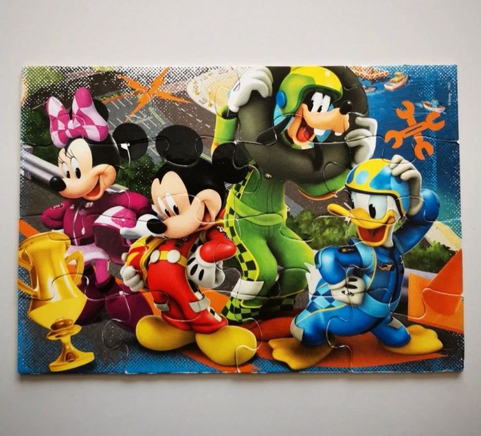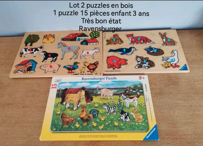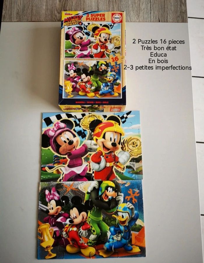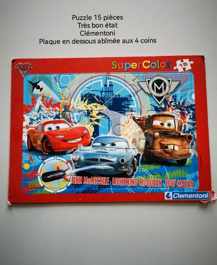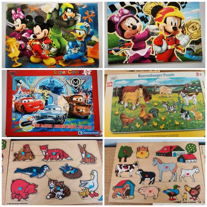 Lot 6 puzzles 15 et 16 pièces. 10euros le lot ou à l'unité : -2 puzzles en bois Mickey 16 pièces. 2-3 petites imperfections restent en très bon état. 4euros -puzzle 15 pièces Cars. Puzzle en très bon état. Carton en dessous du puzzle un peu abîmé (photo) 2euros -puzzle 15 pièces animaux. Très bon état. 3euros -2 puzzles en bois, pièces animaux à encastrer. Très bon état. 4euros #audjouet #audpuzzle ***J'applique des réductions en fonction des lots. N'hésitez pas à me demander***