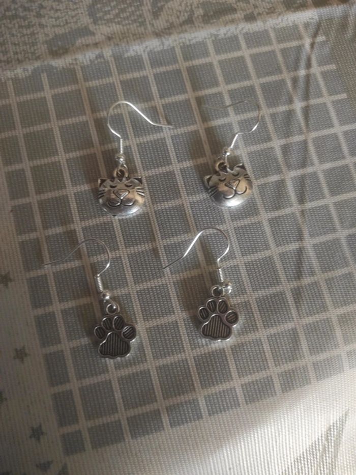 Lot 2 paires de boucles d'oreilles chat - photo numéro 2