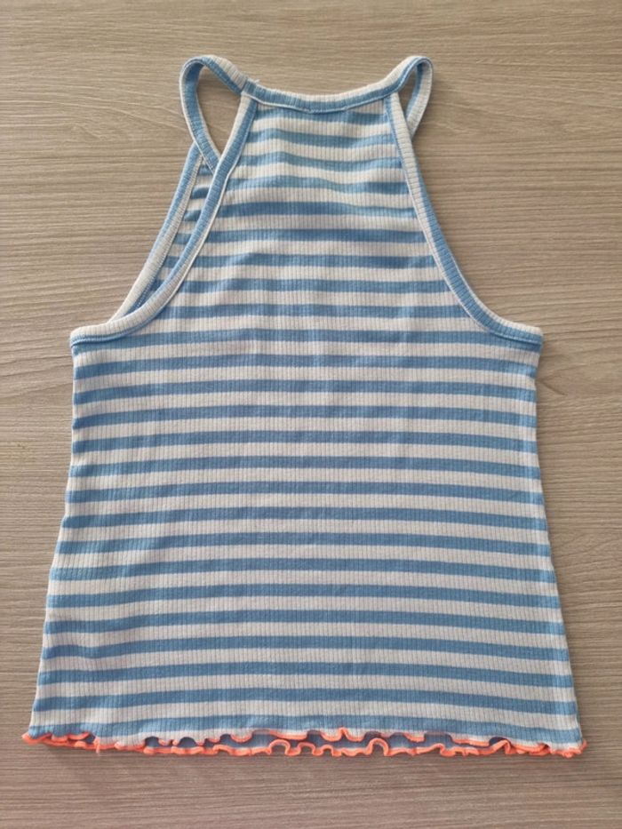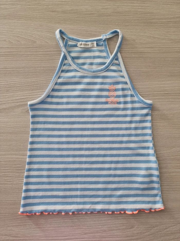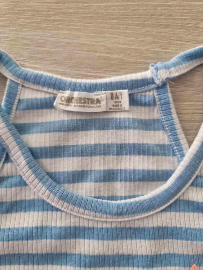 Debardeur rayé bleu ciel et blanc Orchestra Taille 8 ans En très bon état général.