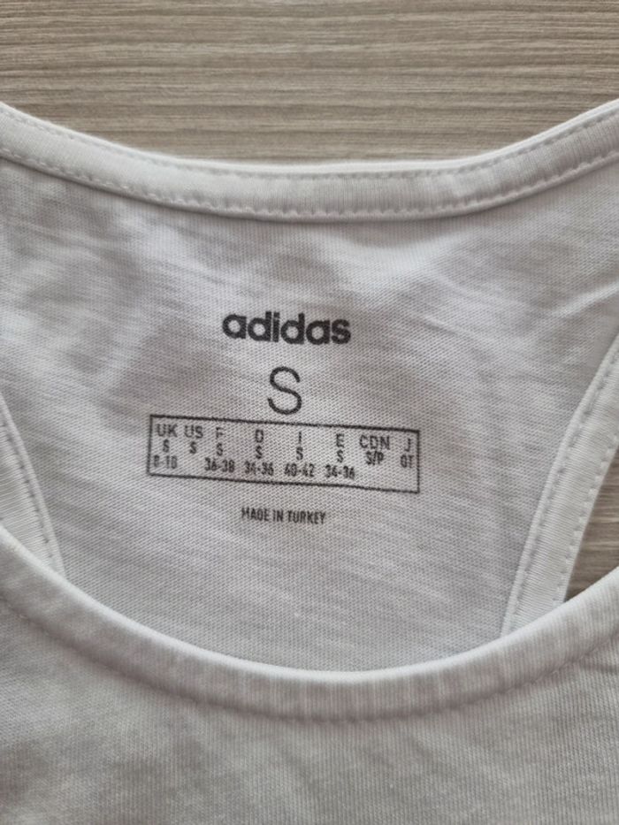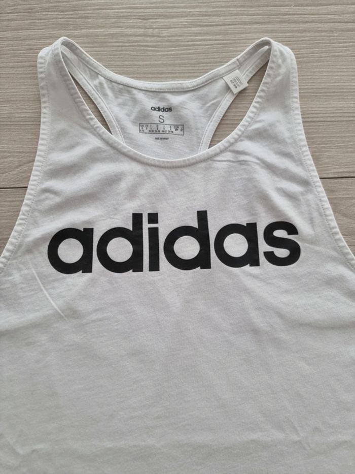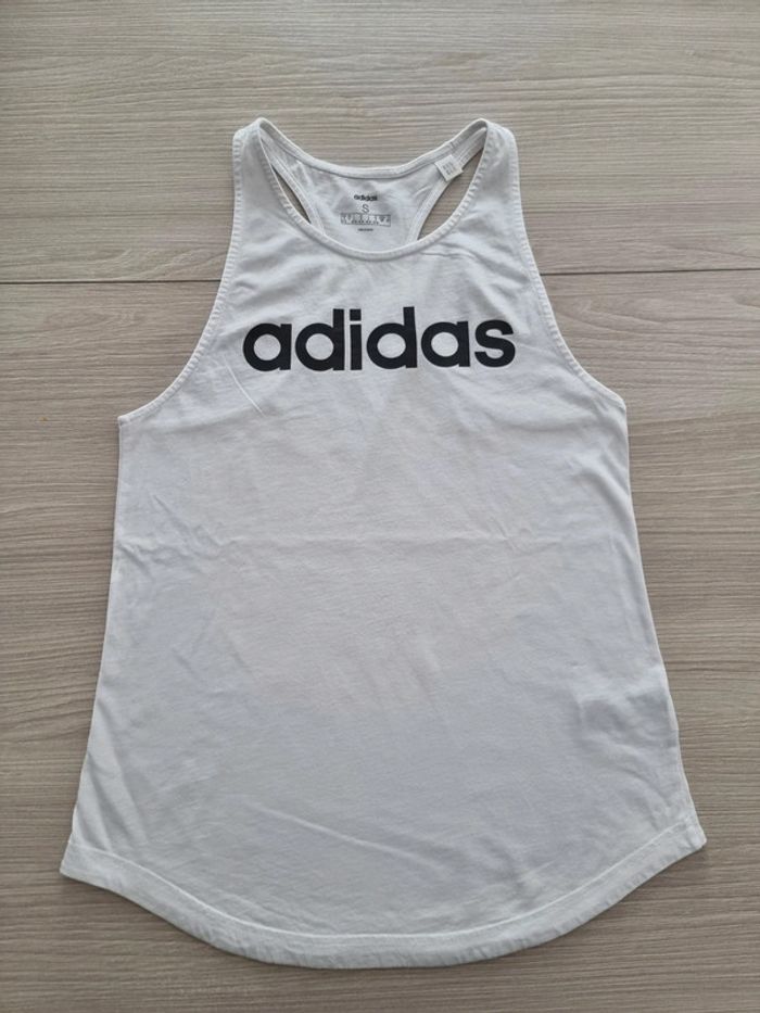 Debardeur blanc et noir Adidas Taille S En bon état, je signale qu'il y a une petite tâche devant.