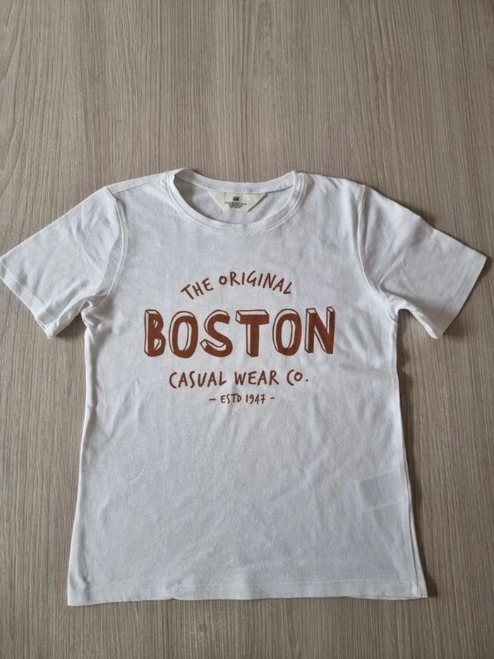 T-shirt blanc Boston H&M Taille 122/128 cm En très bon état général.