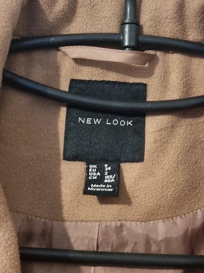 Manteau camel New Look Taille 34 En bon état, légèrement abîmé à un endroit. Voir les photos. 2 poches plaquées.