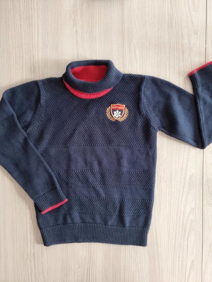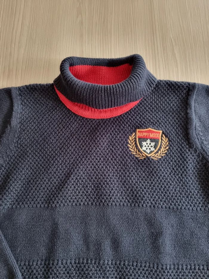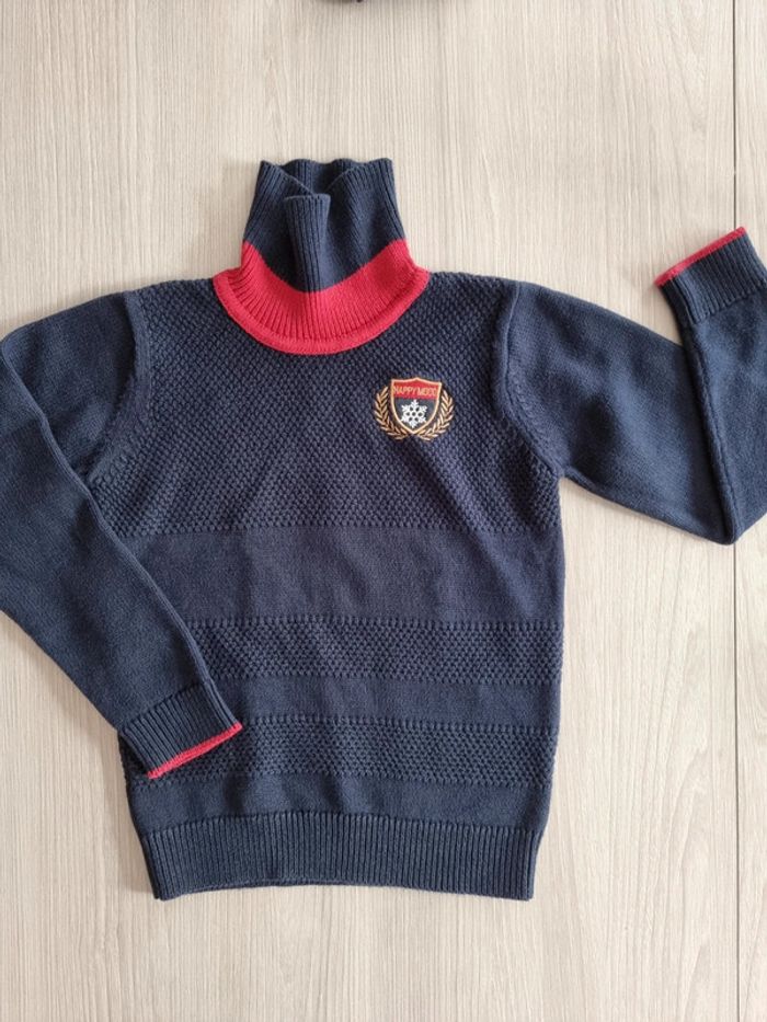 Pull col roulé bleu marine et rouge - TAO - Taille 8 ans - photo numéro 1